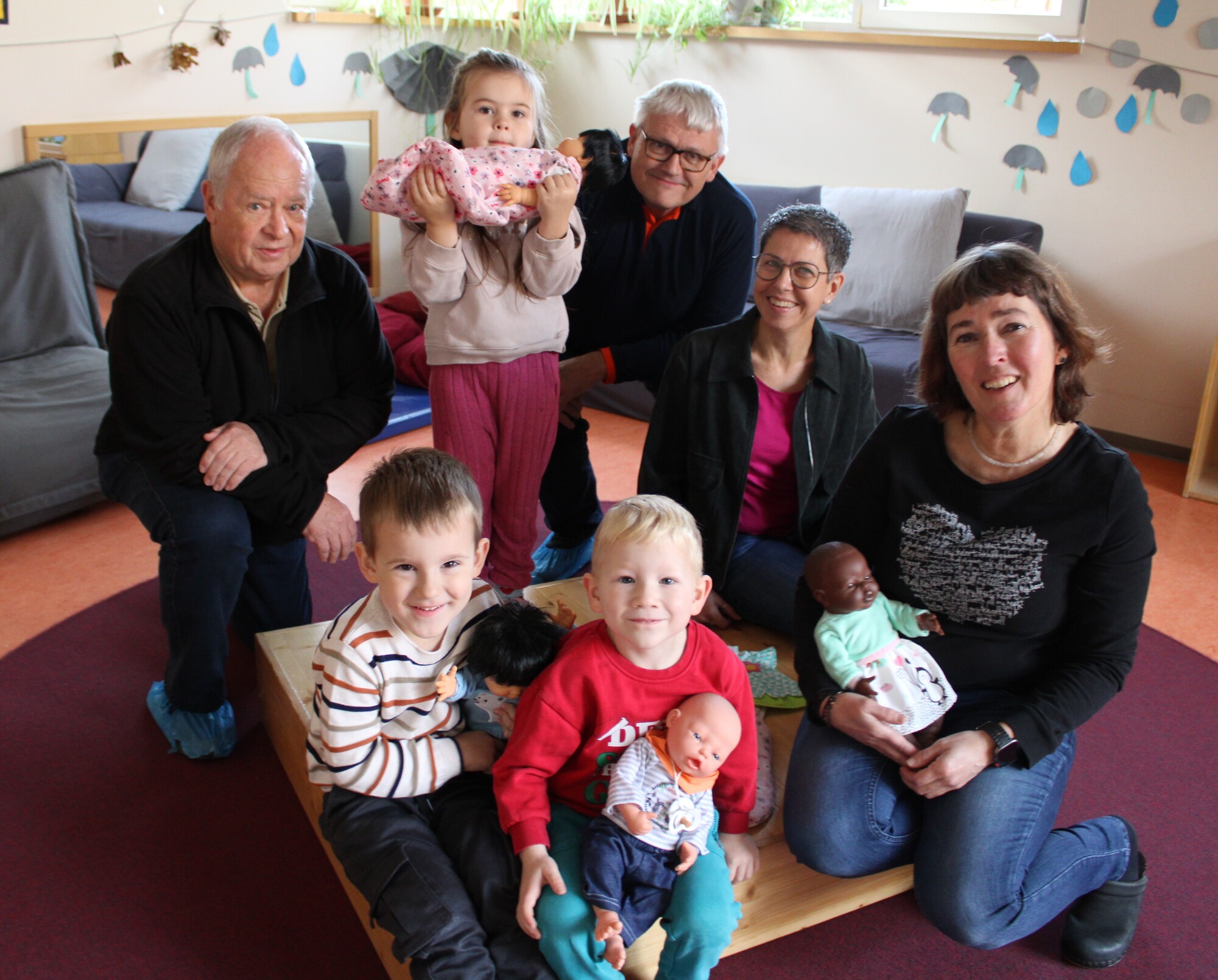 Die Kinder der Kita Kinderinsel in Riedstadt-Wolfskehlen freuen sich sehr über vier neue Babypuppen mitsamt mehreren Garnituren Kleidung. Die Neuanschaffung möglich gemacht haben die ehrenamtlich tätigen Reparierer des Reparatur-Cafés.